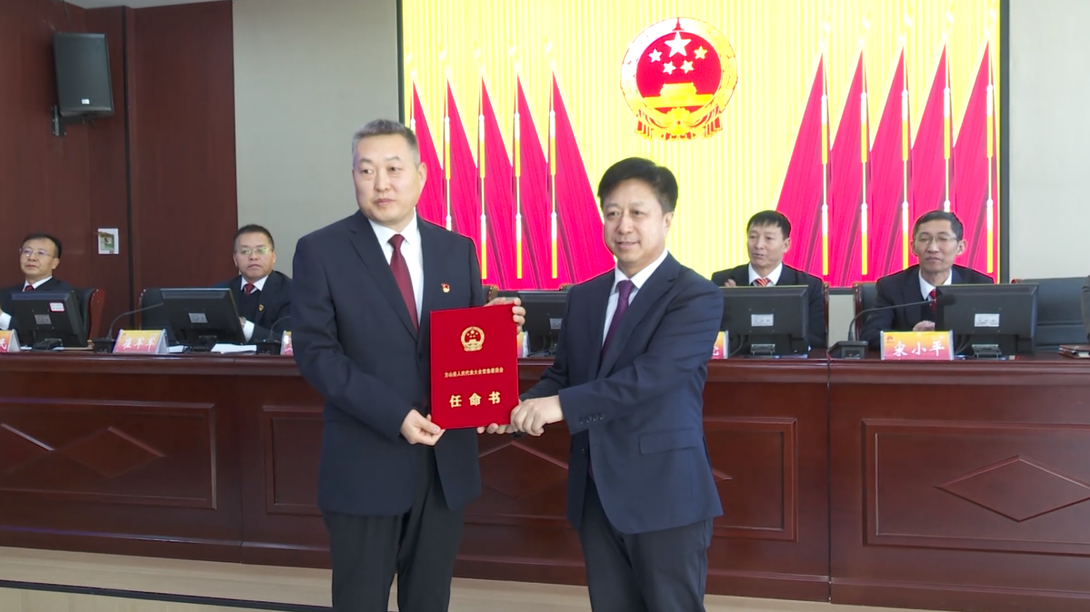 县人大常委会主任秦峰向薛利民同志颁发了任命书,新任命的薛利民同志依法进行了宪法宣誓。