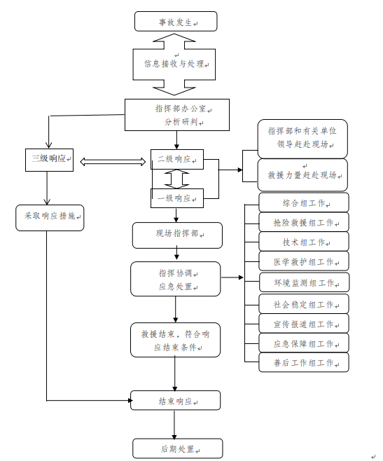 救援结束,险情得到控制,一级响应由县委、县政府主要领导宣布响应结束,二级响应由县应急救援总指挥宣布响应结束,三级响应由县指挥部指挥长宣布响应结束。