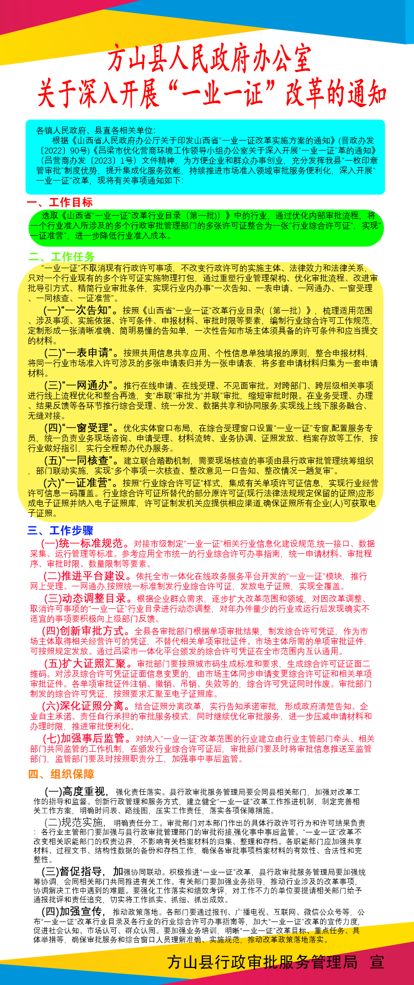 【图解】方山县人民政府办公室关于印发《关于深入开展“一业一证”改革的通知 》的解读