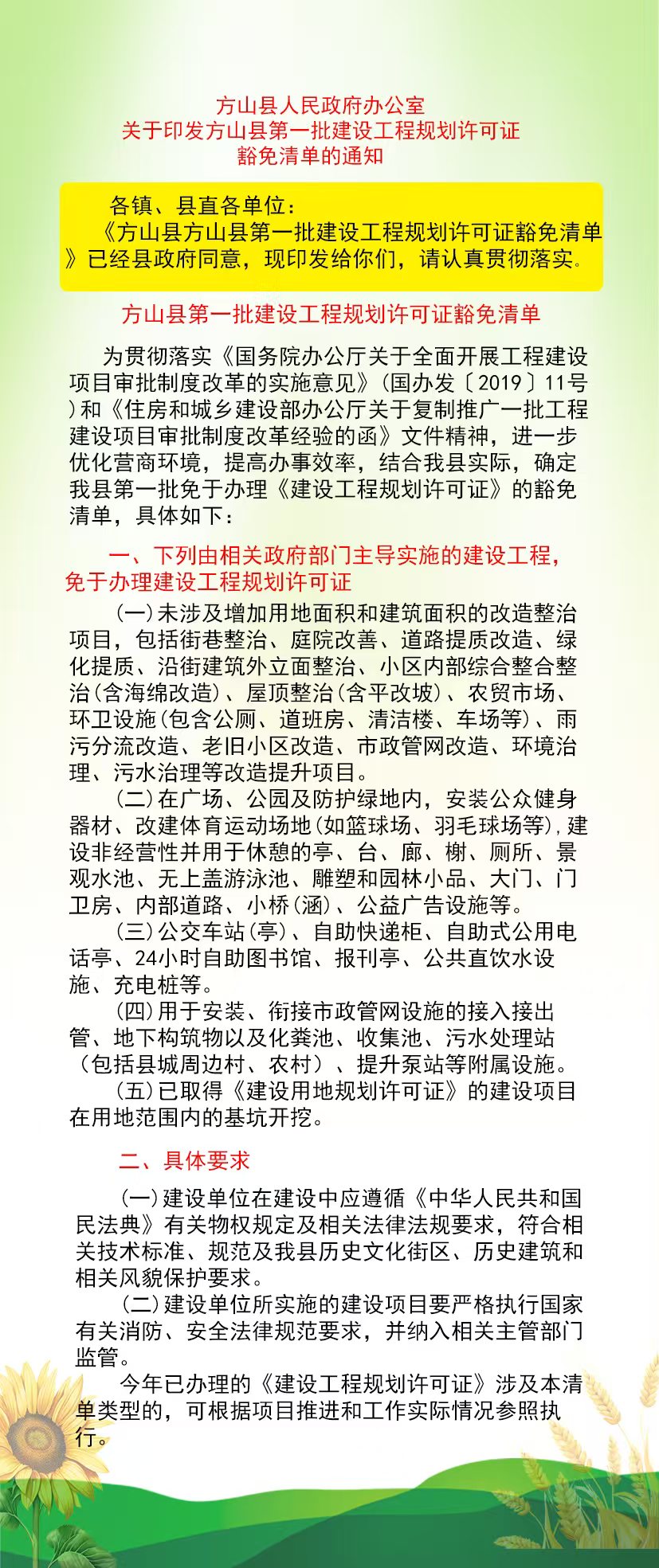 【图解】方山县人民政府办公室关于印发《方山县第一批建设工程规划许可证豁免清单》的图解