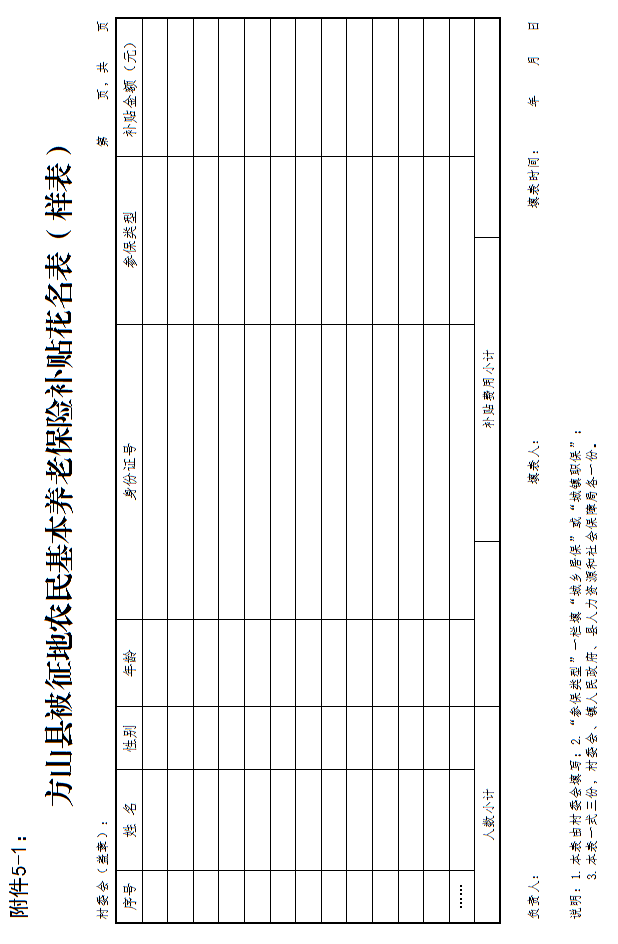 5.方山县被征地农民基本养老保险补贴花名表(样表)