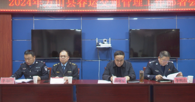 为全力做好2024年春运期间全县道路交通安全管理工作,有效化解春运期间道路交通安全风险,全力预防和减少道路交通事故,1月25日,我县召开2024年方山县春运交通管理工作部署会,政府副县长、公安局局长高建军出席会议并讲话。
