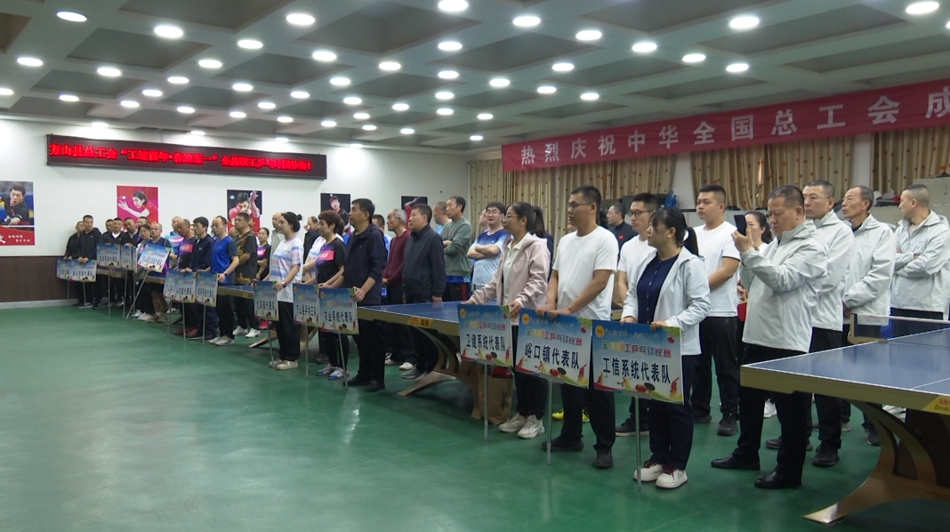 为庆祝中国工运百年,迎接“五一”国际劳动节,4月26日,由县总工会主办的“工运百年·喜迎五一”全县职工乒乓球团体赛在县青少年活动中心开赛。来自全县各机关、企事业单位的18支代表队、100余名乒乓球爱好者参加了此次比赛。县人大常委会副主任、县总工会主席常云录,政府副县长秦鑫出席活动。
