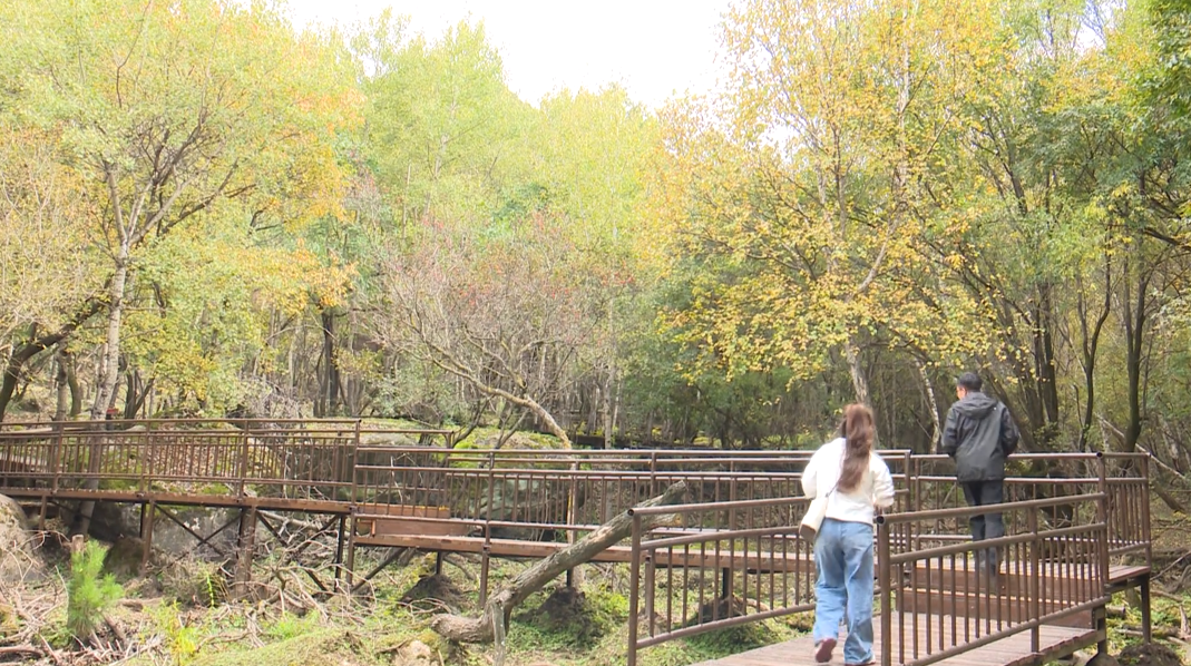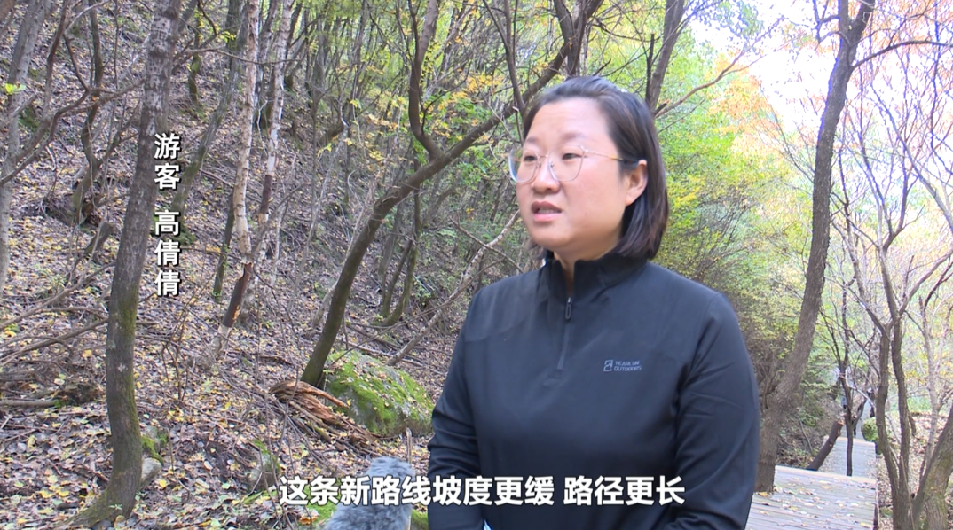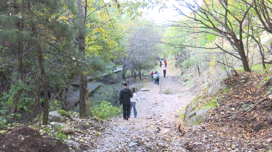 这条依山体走势修建的步道,最大程度保留了山林原始风貌,脚下是错落的木栈道,身旁是葱郁的林木,沿途奇石嶙峋自成天趣,耳畔萦绕着清脆鸟鸣与潺潺溪水,相较于前山成熟的游览路线,这里少了一份喧闹,多了一份与自然对话的宁静,让游客沉浸式感受秋日山林的野趣。众多游客慕名而来,专程体验这条依山就势、蜿蜒而上的新步道,他们或脚步轻快地向山顶进发、或在平缓路段悠然慢行,细细品味沿途风光。