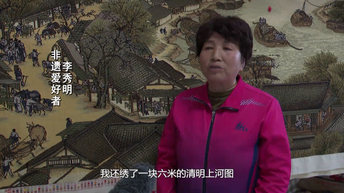 我还绣了一块六米的清明上河图,整整用了四年的时间,还记得那是我在电视上看到一位新疆阿姨用十年的时间绣起了清明上河图受到了国家领导的接见,这鼓舞了我,我便开始绣,我绣了四年,中途也曾经想放弃,但是,每当我想起那位新疆阿姨的时候我就信心百倍,我终于绣好了,绣好的那一刻,我仿佛是把一段断了的历史接上了,这更是一段民族情。