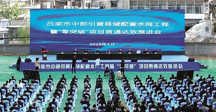 9月25日,吕梁市中部引黄县域配套水网工程暨“零突破”项目贯通达效推进会在柳林县举行,兴县、临县、离石区、柳林县、中阳县五县区正式通水标志着我市中部引黄县域配套水网工程取得实质性进展。市委书记孙大军宣布吕梁市中部引黄县域配套水网工程“零突破”项目正式通水。省水利厅厅长龚孟建、市长熊义志讲话。市领导田安平、刘世庆、庞明明、刘晓春,万家寨水控集团董事长兰康杰等出席活动。