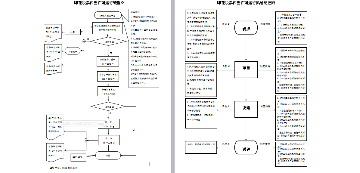 1、受理责任:公示印花税票代售许可应当提交的材料,一次性告知补正材料,依法受理或不予受理(不予受理应当告知理由)。 2、审查责任:对照印花税票代售许可条件和标准,对书面申请材料进行审核,组织现场考察,抽样检验。 3、决定责任;作出印花税票代售许可或者不予行政许可决定,法定告知(不予许可的应当书面告知理由) 。 4、送达责任:准予印花税票代售许可的,制发许可证书或批件,送达并信息公开。 5、事后监管责任:开展印花税票代售许可定期或不定期检查。 6、其他法律法规规章文件规定应履行的责任。 |