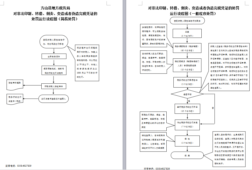 | 对非法印制、转借、倒卖、变造或者伪造完税凭证的处罚 | 【行政法规】《中华人民共和国税收征收管理法实施细则》第九十一条 | 1、立案责任:税务机关根据日常管理中发现或者接到举报、控告的纳税人非法印制、转借、倒卖、变造或者伪造完税凭证的违法行为案件,应予以审查,决定是否立案。 2、调查责任:指定专人负责,对非法印制、转借、倒卖、变造或者伪造完税凭证的违法行为证据调查取证,与当事人有直接利害关系的应当回避。执法人员不得少于两人,调查时应出示执法证件,允许当事人辩解陈述,执法人员应保守有关秘密。制作调查检查报告。 3、审查责任:对非法印制、转借、倒卖、变造或者伪造完税凭证的案件的违法事实、证据、调查取证程序、法律适用、处罚种类和幅度、当事人的陈述和申辩理由等方面进行审查,提出处理意见。 4、告知责任:做出非法印制、转借、倒卖、变造或者伪造完税凭证的行政处罚决定前,应书面告知当事人违法事实及其享有的陈述、申辩、要求听证等权利。 5、决定责任:制作行政处罚决定书,载明行政处罚告知、当事人陈述申辩或者听证情况等内容。 6、送达责任:将行政处罚决定书按法律规定的方式送达当事人。 7、执行责任:将罚款在处罚决定规定的期限内追缴入库。当事人在法定期限内不申请行政复议或者提起行政诉讼,又不履行处罚决定的,税务机关可依法采取加处罚款、查封扣押或向人民法院申请强制执行等措施。 8、其他法律法规规章文件规定应履行的责任。 | 因不履行或不正确履行行政职责,有下列情形的,行政机关及相关工作人员应承担相应责任: 1、对非法印制、转借、倒卖、变造或者伪造完税凭证的处罚应当立案的而未立案的; 2、没有法律和事实依据实施行政处罚的; 3、违反法定的行政处罚程序的; 4、指派不具备法定行政执法资格的人员实施行政处罚的; 5、随意使用自由裁量权,擅自改变行政处罚种类、幅度、范围的; 6、对当事人进行罚款不使用法定单据的; 7、应当移送司法机关处理而不移送的; 8、依法应当举行听证而不举行听证或不按规定举行听证的; 9、未在规定时限内办理税务行政复议事项的; 10、私分、挪用、截留、非法占有税款、滞纳金、罚款的; 11、凭借职权向纳税人吃、拿、卡、要,敲诈勒索的; 12、因处罚不当给当事人造成财产损失等不良后果的; 13、在行政处罚过程中滥用职权、玩忽职守、徇私舞弊的; 14、其他违反法律法规规章文件规定的行为。 | 【法律】1.《中华人民共和国行政处罚法》第七章 2.《中华人民共和国税收征收管理法》(中华人民共和国主席令第49号)第七十六至第八十五条 【党内法规】《中国共产党纪律处分条例》 【规章】《税收违法违纪行为处分规定》(监察部、人力资源社会保障部、国家税务总局令〔2012〕第26号) 【规范性文件】1.《税收执法过错责任追究办法》(国税发〔2005〕42号) 2.《山西省地方税务局税务行政过错责任追究实施办法》(晋地税发〔2006〕112号ര | 一、行政处理:1.训诫或者书面告诫; 2.责令作出书面检查; 3.通报批评; 4.调离原岗位; 5.停职离岗学习; 6.责令辞去或建议免去领导职务; 7.取消执法人员执法资格; 8.经济惩戒; 二、行政处分:包括警告、记过、记大过、降级、撤职、开除; 三、党纪处分:警告、严重警告、撤销党内职务、留党察看、开除党籍。 四、其他法律责任 | ||||