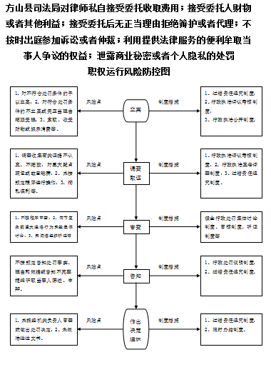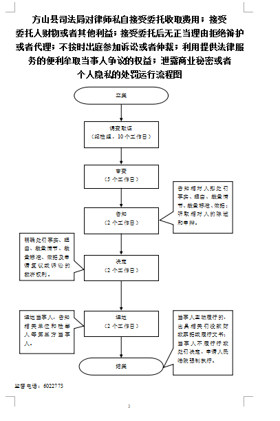 | 行政处罚 | 01269077-4 -CF-0002 | 对律师私自接受委托收取费用;接受委托人财物或者其他利益;接受委托后无正当理由拒绝辩护或者代理;不按时出庭参加诉讼或者仲裁;利用提供法律服务的便利牟取当事人争议的权益;泄露商业秘密或者个人隐私的处罚 | 【法律】《中华人民共和国律师法》第四十八条 | 1、立案责任:发现和受理移交的违法行为,予以审查,决定是否立案。2、调查责任:立案的,指定专人负责,及时组织调查取证,与当事人有直接利害关系的应当回避。执法人员不得少于两人,调查时应出示执法证件,允许当事人辩解陈述。执法人员廉洁奉公保守有关秘密。3、审查责任;审查案件调查报告,对案件违法事实、证据、调查取证程序、法律适用、处罚种类和幅度、当事人陈述和申辩理由等方面进行审查,提出处理意见(主要证据不足时,以适当的方式补充调查)。4、告知责任:作出行政处罚决定前,应制作《行政处罚告知书》送达当事人,告知违法事实及其享有的陈述、申辩等权利。符合听证规定的,制作《行政处罚听证告知书》。5、决定责任:制作行政处罚决定书,载明行政处罚告知、当事人陈述申辩或者听证情况等内容。6、送达责任:行政处罚决定书按法律规定的方式送达当事人。7、执行责任:依照生效的行政处罚决定,进行处罚。8、其他责任。 | 1、超越或者滥用监督职权的;应予受理而不受理;2、对知悉的财政、财务和会计违法行为未及时处置的;群众举报或发现违法线索置之不理;3、违反规定程序实施监督检查的;4、泄露监督检查中知悉的国家秘密、商业秘密和个人隐私的;5、索贿、受贿、利用监督检查工作之便谋取私利的;6、指派不具备法定行政执法资格的人员实施行政处罚的;7、擅自设立处罚种类或者改变处罚幅度、范围的;不规定时限告知和作出决定;8、不按时执行的;违反“罚缴分离”规定,擅自收取罚款的;9、对当事人进行罚款、没收财物等行政处罚不使用法定单据的;10、依法应当移送司法机关处理而不移送的;11、行政机关将罚款、没收的违法所得或者财物截留、私分或者变相私分的;12、执法人员利用职务上的便利,索取或者收受他人财物、收缴罚款据为己有的;13、行政机关使用或者损毁扣押的财物,对当事人造成损失的;14、行政机关违法实行检查措施或者执行措施,给公民人身或者财产造成损害、给法人或者其他组织造成损失的;15、在行政处罚过程中滥用职权、玩忽职守、徇私舞弊的;16、其他违法违规行为 | 【法律】《中华人民共和国行政处罚法》第五十五条、五十六条、五十七条、五十八条、五十九条、六十条、六十一条、六十二条;《公务员法》第五十三至五十五条;【行政法规】《行政机关公务员处分条例》(国务院第495号令);【地方性法规】《山西省行政执法条例》第十三条、第四十至四十二条;【党内法规】《中国共产党纪律处分条例》;【部门规章】《司法行政机关行政处罚程序规定》(司法部令第51号)第三十三条;【规范性文件】《山西省行政机关及其工作人员行政过错责任追究暂行办法 》、《吕梁市行政执法责任追究暂行办法》第八条、第十九条、第二十四、第二十五条。 | 一、行政处理: 1、诫勉谈话或者责令书面检讨; 2、通报批评; 3、暂扣行政执法证件;4、责令离岗培训;5、调离执法岗位;6、取消执法资格; 7、依法追偿部分或者全部行政赔偿费用。二、行政处分:警告、记过、记大过、降级、撤职、开除。三、党纪处分:警告、严重警告、撤销党内职务、留党察看、开除党籍。四、其他法律责任 | ||