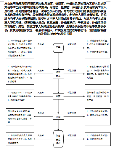 | 行政处罚 | 01269077-4 -CF-0003 | 对律师违反规定会见法官、检察官、仲裁员及其他有关工作人员或以其他不正当方式影响依法办理案件;向法官、检察官、仲裁员以及其他有关工作人员行贿,介绍贿赂或者指使、诱导当事人行贿;向司法行政部门提供虚假材料或者有其他弄虚作假行为;故意提供虚假证据或者威胁、利诱他人提供虚假证据,妨碍对方当事人合法取得证据;接受对方当事人财物或者其他利益,与对方当事人或第三人恶意串通,侵害委托人权益;扰乱法庭、仲裁庭秩序,干扰诉讼、仲裁活动的正常进行;煽动、教唆当事人采取扰乱公共秩序、危害公共安全等非法手段解决争议;发表危害国家安全、恶意诽谤他人、严重扰乱法庭秩序的言论;泄露国家秘密的处罚 | 【法律】《中华人民共和国律师法》第四十九条第一款 | 1、立案责任:发现和受理移交的违法行为,予以审查,决定是否立案。2、调查责任:立案的,指定专人负责,及时组织调查取证,与当事人有直接利害关系的应当回避。执法人员不得少于两人,调查时应出示执法证件,允许当事人辩解陈述。执法人员廉洁奉公保守有关秘密。3、审查责任;审查案件调查报告,对案件违法事实、证据、调查取证程序、法律适用、处罚种类和幅度、当事人陈述和申辩理由等方面进行审查,提出处理意见(主要证据不足时,以适当的方式补充调查)。4、告知责任:作出行政处罚决定前,应制作《行政处罚告知书》送达当事人,告知违法事实及其享有的陈述、申辩等权利。符合听证规定的,制作《行政处罚听证告知书》。5、决定责任:制作行政处罚决定书,载明行政处罚告知、当事人陈述申辩或者听证情况等内容。6、送达责任:行政处罚决定书按法律规定的方式送达当事人。7、执行责任:依照生效的行政处罚决定,进行处罚。8、其他责任。 | 1、超越或者滥用监督职权的;应予受理而不受理;2、对知悉的财政、财务和会计违法行为未及时处置的;群众举报或发现违法线索置之不理;3、违反规定程序实施监督检查的;4、泄露监督检查中知悉的国家秘密、商业秘密和个人隐私的;5、索贿、受贿、利用监督检查工作之便谋取私利的;6、指派不具备法定行政执法资格的人员实施行政处罚的;7、擅自设立处罚种类或者改变处罚幅度、范围的;不规定时限告知和作出决定;8、不按时执行的;违反“罚缴分离”规定,擅自收取罚款的;9、对当事人进行罚款、没收财物等行政处罚不使用法定单据的;10、依法应当移送司法机关处理而不移送的;11、行政机关将罚款、没收的违法所得或者财物截留、私分或者变相私分的;12、执法人员利用职务上的便利,索取或者收受他人财物、收缴罚款据为己有的;13、行政机关使用或者损毁扣押的财物,对当事人造成损失的;14、行政机关违法实行检查措施或者执行措施,给公民人身或者财产造成损害、给法人或者其他组织造成损失的;15、在行政处罚过程中滥用职权、玩忽职守、徇私舞弊的;16、其他违法违规行为 | 【法律】《中华人民共和国行政处罚法》第五十五条、五十六条、五十七条、五十八条、五十九条、六十条、六十一条、六十二条;《公务员法》第五十三至五十五条;【行政法规】《行政机关公务员处分条例》(国务院第495号令);【地方性法规】《山西省行政执法条例》第十三条、第四十至四十二条;【党内法规】《中国共产党纪律处分条例》;【部门规章】《司法行政机关行政处罚程序规定》(司法部令第51号)第三十三条;【规范性文件】《山西省行政机关及其工作人员行政过错责任追究暂行办法 》、《吕梁市行政执法责任追究暂行办法》第八条、第十九条、第二十四、第二十五条。 | 一、行政处理: 1、诫勉谈话或者责令书面检讨; 2、通报批评; 3、暂扣行政执法证件;4、责令离岗培训;5、调离执法岗位;6、取消执法资格; 7、依法追偿部分或者全部行政赔偿费用。二、行政处分:警告、记过、记大过、降级、撤职、开除。三、党纪处分:警告、严重警告、撤销党内职务、留党察看、开除党籍。四、其他法律责任 | ||