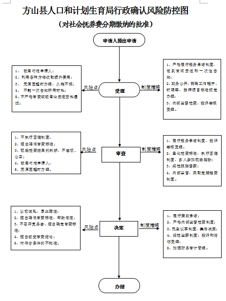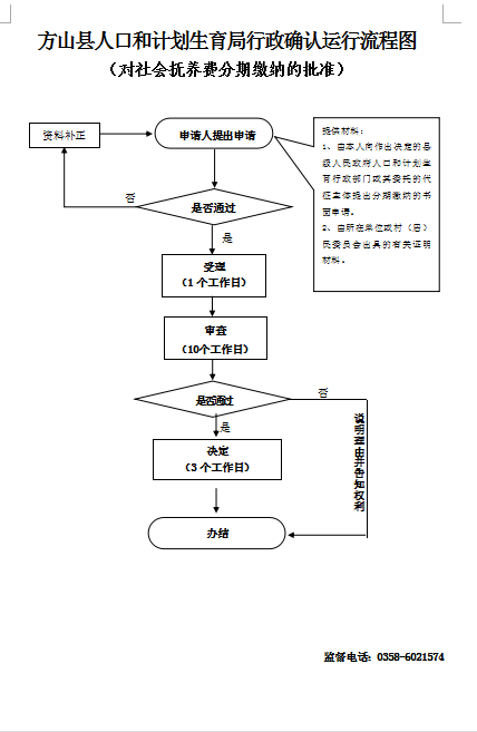 | 行政确认 | 012690141-QR-0001 | 对社会抚养费分期缴纳的批准 | 【法律】《社会抚养费征收管理办法》第六条第二款。 【地方性法规】《山西省社会抚养费征收管理办法》第八条。 | 1、受理责任:根据当事人申请,依法受理或不予受理(不予受理应当告知理由)。 2、审查责任:对照条件和标准对当事人书面申请进行审核。 3、决定责任:作出准予或不准予决定,法定告知具体时间、金额(不予确认的应当书面告知理由)。 4、其他法律法规规章文件规定应履行的责任。 | 1、对申请人符合确认规定条件的申请不予受理、不予确认或不在规定期限内作出确认核准的; 2、对不符合确认规定条件的申请准予确认或超越法定权限作出确认的; 3、在办理过程中发生腐败行为的; 4、其他法律法规规章文件规定应履行的责任。 | 【法律】《中华人民共和国行政处罚法》第七章。 【党内法规】《中国共产党纪律处分条例》第九条、第十条。 【规范性文件】《山西省行政机关及其工作人员行政过错责任追究暂行办法 》、《吕梁市行政执法责任追究暂行办法》第七条、第二十三条、第二十四条、第二十五条。 | 一、行政处理 1、诫勉谈话或者责令书面检讨; 2、通报批评; 3、暂扣行政执法证件; 4、责令离岗培训; 5、调离执法岗位 6、取消执法资格; 7、依法追偿部分或者全部行政赔偿费用。 二、行政处分:警告、记过、记大过、降级、撤职、开除。 三、党纪处分:警告、严重警告、撤销党内职务、留党察看、开除党籍。 四、其他法律责任。 | |