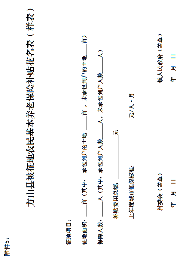 5.方山县被征地农民基本养老保险补贴花名表(样表)