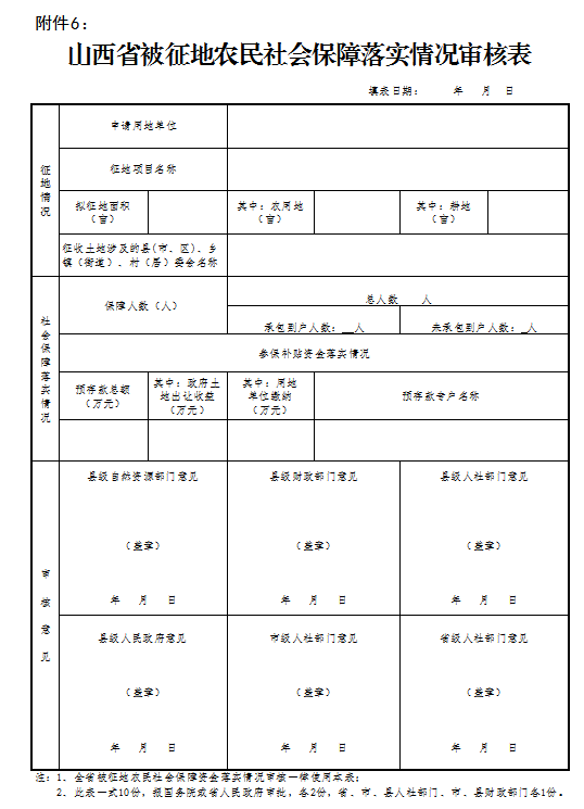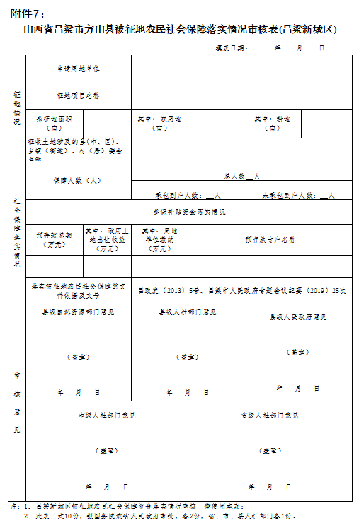 7.山西省吕梁市方山县被征地农民社会保障落实情况审核表(吕梁新城区)